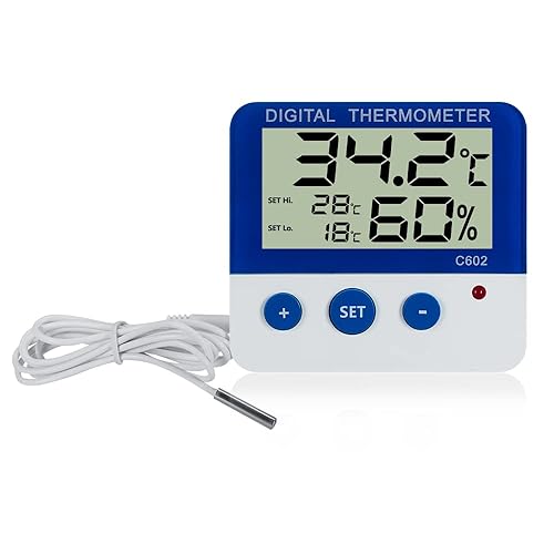 Reptile Terrarium Thermometer with Hi Lo Alarm Reptiles Tank Thermometer Hygrometer Reptile Thermometer and Humidity Gauge with Probe Indoor Outdoor Digital Pet Temperature
