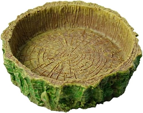 Reptile Water and Food Bowl, Natural Tree Bark Design, Round Shallow Dish, Terrarium Feeding Dish for Lizards, Snakes, Amphibians (Large)