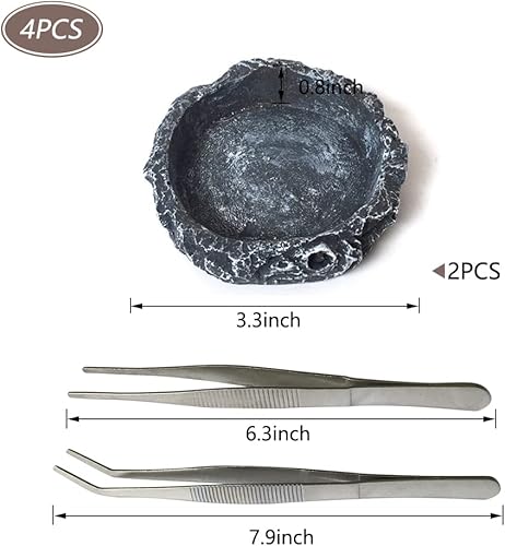 2PCS Reptile Water Dish, Imitating Rock Design Reptile Food Bowl with Straight Curved Tweezers for Lizard Bearded Dragon Leopard Gecko Snake Hermit Crabs