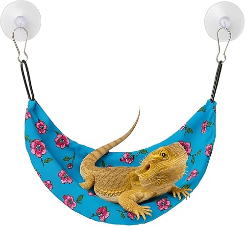 CTWPets Reptile Hammock & Lizard Hammock Hide (100% Polyester, 2 Suction Cups) 9.8" x 3.9" with 2.4" Ideal for Geckos, Lizards & Small Reptile Hide Crested Gecko Accessories (Bright Blue, Medium)