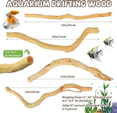 Vmiapxo 250g 16'' Natural Driftwood for Aquarium, Aquascaping Driftwood Roots Assorted Sinkable Spider Wood Reptile Drift Wood Branches Fish Tank Decorations, Thickness 0.3''-0.8''