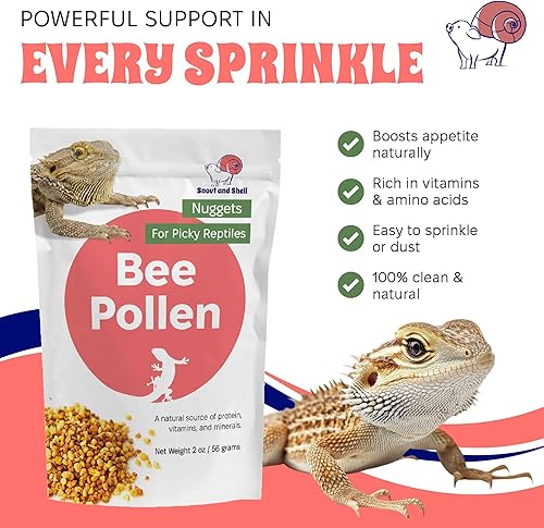 Bee Pollen Nuggets for Reptiles – Natural Supplement for Bearded Dragons, Skinks, and More – Reptile Bee Pollen Powder, Appetite Booster – 2 oz Resealable Pack