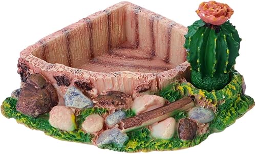 POPETPOP Reptile Food Bowl Cactus Shape Durable Resin Feeding Dish for Bearded Dragon Lizard Turtle 5.91X5.12X3.15 Inch Easy Clean Reptile Feeding Pot
