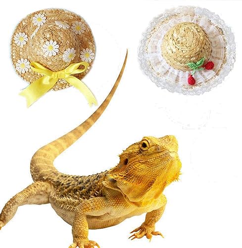 2 Pack Bearded Dragon Hats Handmade Rattan Headwear Reptile Apparel Accessories Lizard Caps for Small Animals