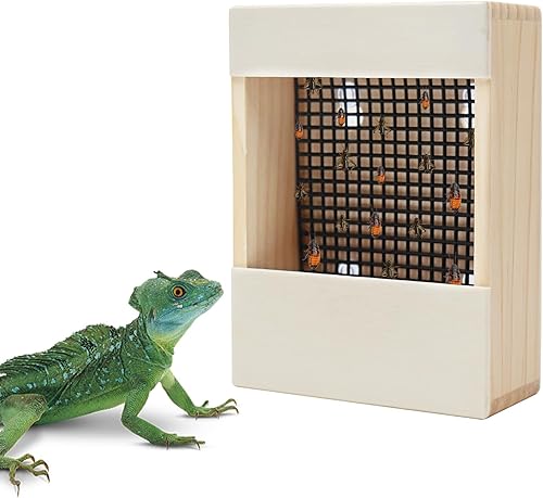 Chameleon Feeder, Bearded Dragon Bug Bowl, Wooden Reptile Feeder Box, Wall-Mounted Insect Feeder with Suction Cups, Tank and Aquarium Accessories for Lizard Bearded Dragon Gecko Frog