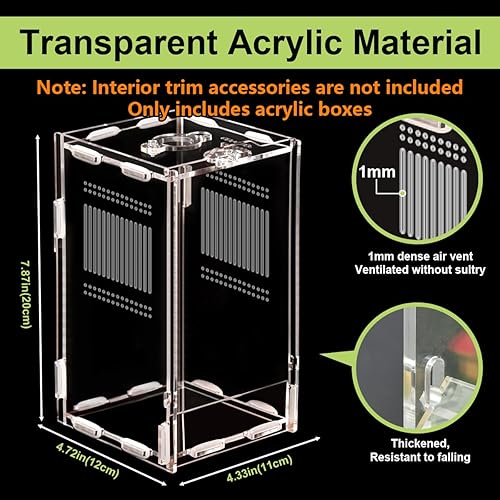 Jumping Spider Enclosure, 4.7" X 4.7" X 7.8" Acrylic Spider Habitat, Front Opening Reptile Terrarium with Matrix Ventilation Holes & Feeding Holes, for Hermit Crab Tarantula Mantises Beetles