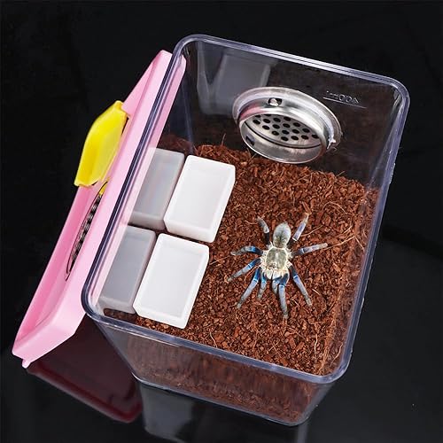 Acrylic Reptile Terrarium, 4 Grids Clear Reptile Habitat Cage with Thermometer, 9.4 * 11.8 * 11.2inch, Transparent Reptiles Feeding Box for Small Reptiles Pets, Scorpions, Spiders