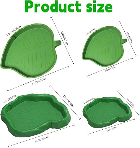 4pcs Leaf Reptile Food Water Bowl,Bowls Turtle Feeding Dishes,Tortoise Habitat Accessories Food and Water Feeder,for Tortoises, Lizards, Geckos and Other Reptiles 2 Sizes