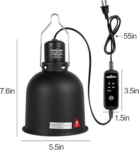 REPTI ZOO Reptile Light Fixture with Timer, 5.5 Inch Deep Dome Lamp Fixture with Light Bulb Timer Controller Optical Reflection Cover for Reptile Glass Terrariums