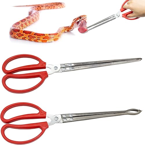 2 Pcs Snake Feeding Tongs 15 Inch Extra Long Stainless Steel Reptile Feeding Tongs, Curved Mouth & Straight Mouth for Ball Python, Fish Aquariums, Reptiles Snakes, Tank Accessories Terrarium Supplies