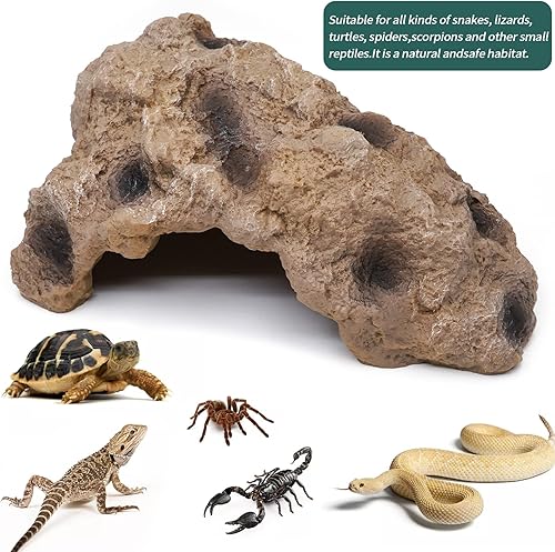 Flushbay Reptile Rock Hide Cave Resin Large Reptile Hideouts Habitat Cave Terrarium Decorations for Bearded Dragon Lizards Geckos Leopard Chameleons Frogs Turtles Snakes