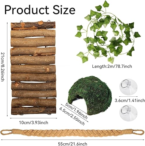 Hermit Crab Accessories, 4 Pcs Hermit Crab Climbing Toys Bendable Rope Bridge Wooden Shell Hideout Hut Plants for Reptile Amphibians Hermit Crab Tank Accessories Supplies