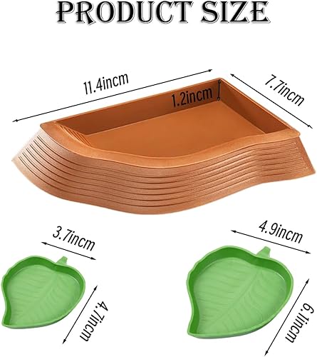 4 Pcs Turtle Water Trays with Ramp,Leaf Tortoise Food Water Bowl with Tweezers,Reptile Turtle Habitat,Tortoise Bath Bowl,Turtles Habitat Accessories,Waters Dish for Reptile Tank,for Indoor Aquariums