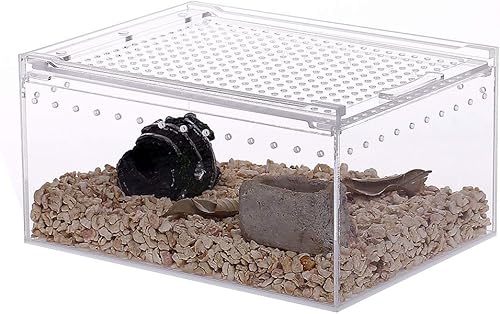 NANEEZOO Magnetic Acrylic Reptile Case - 8"x6"x4" Flat Long Enclosure Transparent Reptile Breeding Box Terrarium Cage - for Tarantula Scorpion Sling Isopods Invertebrates & Insect Mantis