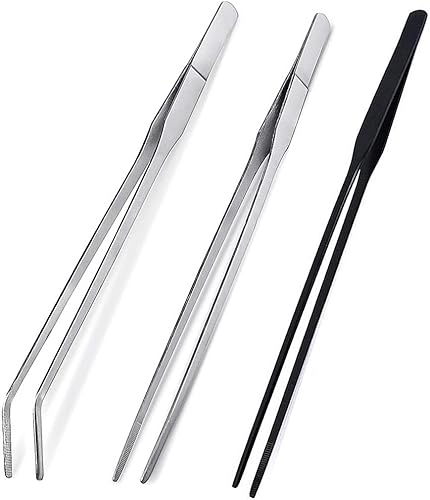 3Pcs Reptile Metal Feeding Tongs, Snake Tank Long Tweezers Fit Bearded Dragon Tarantula Spider Gecko Lizard Frog Turtle Ball Python Aquarium Terrarium