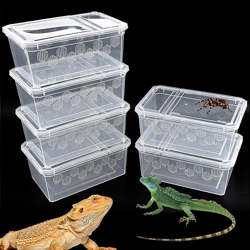 6 Pack Reptile Feeding Box Breeding Box Transparent Hatching Container Plastic Feeding Box for Small Reptiles Amphibians Spiders Scorpions Geckos Tortoises Treefrogs (Small Size)
