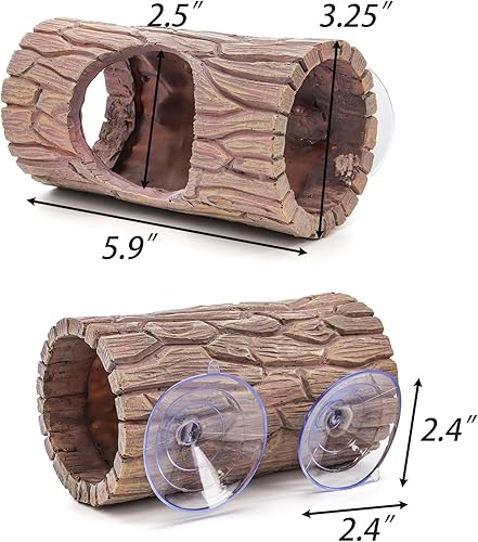 TOPZEA Reptile Hide Cave, Resin Hollow Tree Trunk Gecko Hide Climbing Toy with Strong Suction Cup, Reptile Hideout Shelter Sleeping Cave Decor for Crested Gecko, Hermit Crab, Frog, Tank Accessories