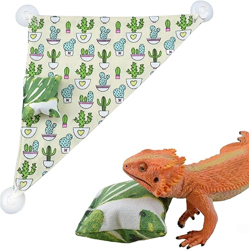 Reptile Hammock Swing Hanging Bed Lounger Ladder with Adhesive Hooks and Suction Hook for Bearded Dragon Leopard Gecko Rat Lizard (Cactus Pattern)