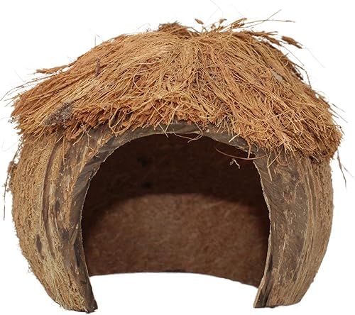 Needzo Hideout for Hermit Crabs, Reptiles, Natural Habitat Cage Decoration, 4x5 Inches (Coconut Tiki Hut)