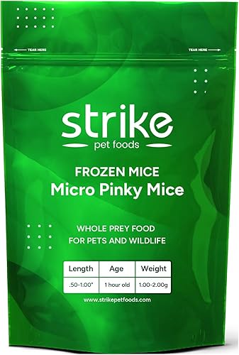 STRIKE Micro Pinky Frozen Mice for Snake Food, Ideal Size Feeder Mice for Baby King, Gopher, Corn, Milk, Hognose Snakes, and Bearded Dragons (1.00-1.89 Grams) (.5-1 inches), 10 Count