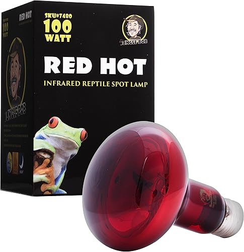 Jungle Bob - Red Hot Heat Bulb - 100W Infrared Nocturnal Spot Light for Undisturbed Nighttime Viewing - Safe & Convenient 24 Hour Heat Source - Red Reptile Lamp for Terrariums - 1 Pack