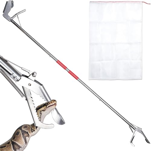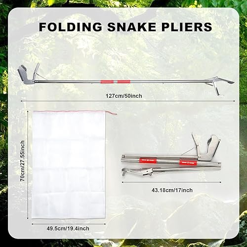 Snake Grabber Tool, Wide Jaws Snake Tongs Grabber with Snake Bag Serrated Design Foldable Professional Snake Grabbing Stick Pole Pliers Snake Handling Tools for Mice, Picking Up Trash