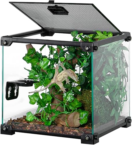 OIIBO Small Glass Reptile Terrarium 12.2" x 12.2" x 11.8" Top Feeding Reptile Tank Full View Visually Appealing Reptile Amphibians Habitat Enclosure