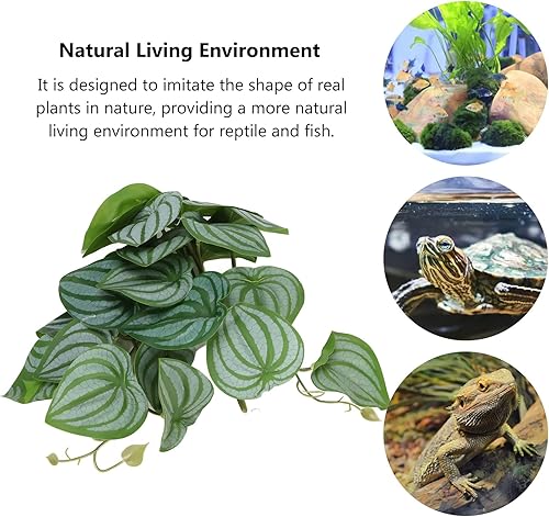 Artificial Reptile Plants with Suction Cups, Watermelon Leaves & Vines for Terrarium, Plastic Climbing Plants for Reptile Tank Decor, Habitat Accessories for Lizards/Chameleons