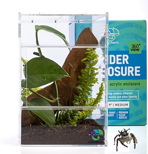 EctoTherm Jumping Spider Enclosure - Complete Acrylic Terrarium Habitat for Spiders, Tarantulas, Praying Mantis - Small Spider House with Front Opening Door - Bug Enclosure for Arboreal Species