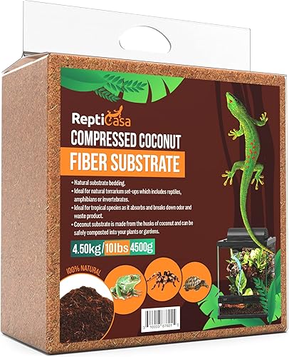 Compressed Coconut Fiber Substrate, 10 lb. Block, Natural Husk Terrarium Bedding, Reptiles, Frogs, Snakes, or Tortoise, Odor and Waste Absorbent Compostable, Organic with High Expansion