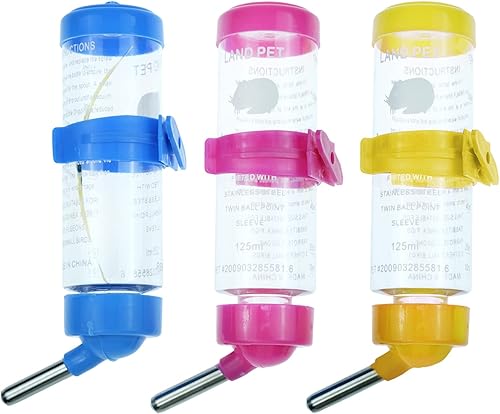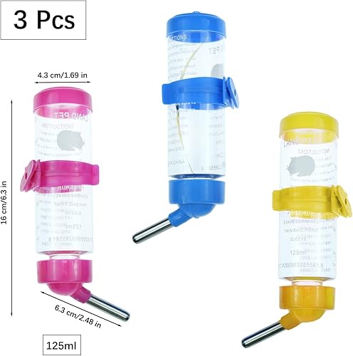 3 Pack Hamster Water Feeder Bottle, 125 ml No-Drip Small Animals Water Dispenser, Pet Hanging Water Bottle for Guinea Pigs, Bunny, Chinchillas, Rabbit
