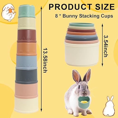 8 PCS Bunny Toys Stacking Cups Bunny Cups Stackable Guinea Pig Stacking Cups Colorful Reusable Rabbit Toys for Rabbit Guinea Pig Hiding Food Playing