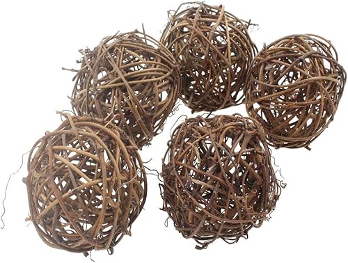 emours Willow Branch Rattan Ball Chew Toys for Small Animals Rabbits Guinea Pigs Chinchillas Pet Rats 5Pcs