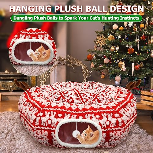 Christmas Tree Cat Tunnel Bed - Cute Cat Donut Tunnel Toy, Under Christmas Tree Skirt Soft Plush Peekaboo Cats Cave Donut, Multifunctional Round Pet Cave Toy for Kittens/Puppies/Rabbits