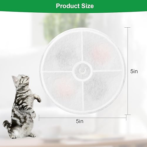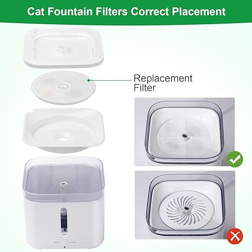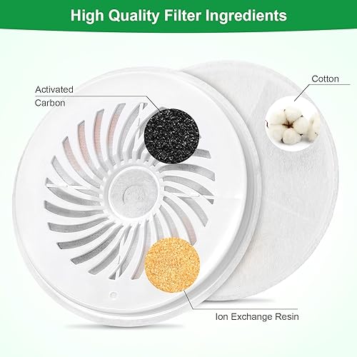 [4 Layer filtration system] Pet water fountain filters has 4 layer filtration system, high density cotton non-woven fabric layer fliter hairs and residue; Activated carbon particles can remove chlorine and odor; Ion exchange resin, can filter heavy metals and improve the taste; ABS grid can stop hair and large impurities, keep water clean, healthy and tasty for your pets.