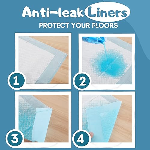 ULTRA ABSORBENT PET PEE PADS - Watch these pee pads absorb liquids in a matter of seconds! The absorbent top layer also keeps the surface dry by absorbing more liquid in one go. These pet potty training pads can absorb up to 6 cups of liquid. Say goodbye to wet paws that track pee everywhere!