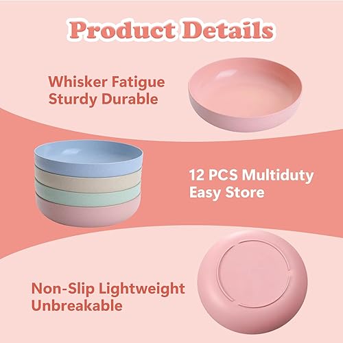 【Colorful & Abundant】: Our 12-pack cat bowls set includes cat food bowls in four vibrant colors, Bright colors can stimulate your pet's appetite,enough quantity to meet the needs of multiple pets use or replacing needs or serve as handy replacements.