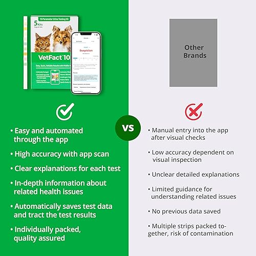 [COMPREHENSIVE PET HEALTH CHECKUP] The VetFact App stands out with advanced mobile imaging technology that precisely analyzes and tracks your pet’s urine test results, a task that can by challenging for the naked eye. Get detailed health insights and stay informed about potential health problems — all through your smartphone.