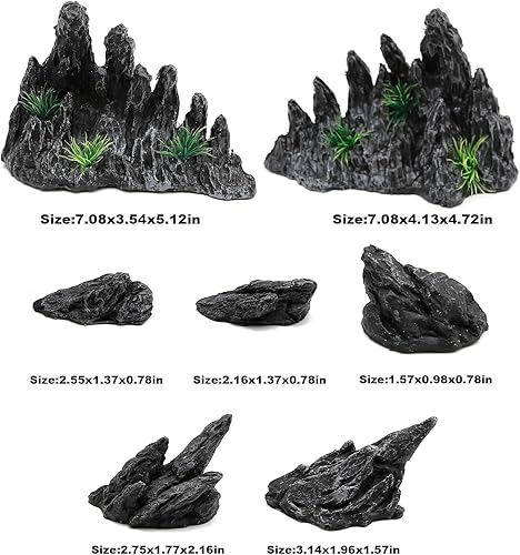 Package Include: Aquarium rock decorations include 7 parts Resin imitation stone, 2 pcs large 7 x 4 x 4.7 and 5 small stone. suitable for10-20 gallon aquarium or standard scale of 12 - 20 inch aquarium