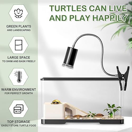 【UVA/UVB Basking Lamp + 25WBulbs】:The lamp can adjust the temperature switch, freely adjust the turtle's favorite temperature, the turtle needs to be in the sun for 1-2 hours a day, for metabolism, mood regulation, reproduction, etc. They fit perfectly into this little tank.