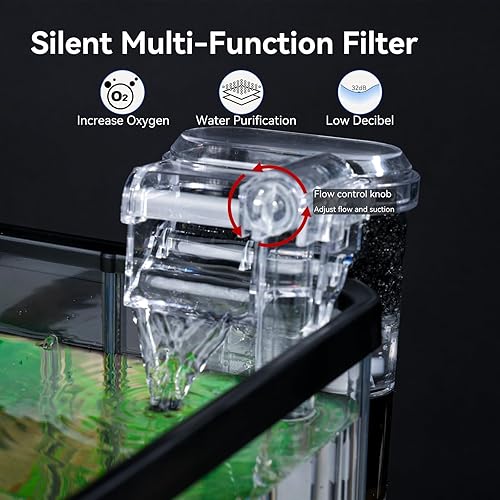【Whisper-Quiet Pump】: The betta fish tank included pump maintains clean, fresh water with minimal effort, drastically reducing water change frequency. Engineered for near-silent operation—its sound becomes virtually imperceptible at optimal water levels, allowing uninterrupted sleep even when placed bedside