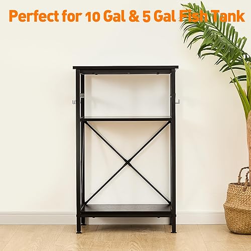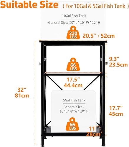 【Product Size & Usage Notice】LAQUAL 10 gallon aquarium stand measures 20.5"(52cm)L * 11"(28cm)W * 32"(81cm)H. With a sleek rustic brown contemporary design, the aquarium stand will complement a variety of home decor styles. It not only works as a practical fish tank stand, but also as a beautiful home decoration, adding a touch of modern elegance to your living space. Notice: 1. Please confirm the fish tank's size of your own is suitable for this stand. 2. The fish tank is not included.