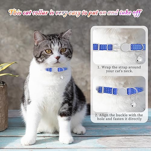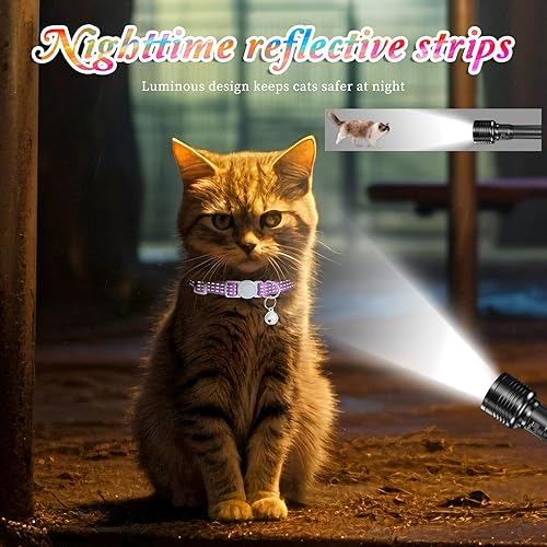 Cat Collar Reflective: Enhance your pet's visibility with our reflective cat collar with bell, featuring three strips that catch light in low-light conditions. Whether indoors or outdoors, these cat breakaway collar ensure your pet's safety during nighttime adventures as break away collar for cats.