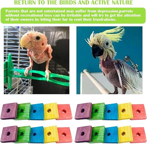 Safe to chew: The Parrot Chew Stress Reliever Wooden Block is made of natural wood and is dyed in safe colors. Odorless and non-toxic, it is designed in bright colors so it easily attracts the bird's attention.