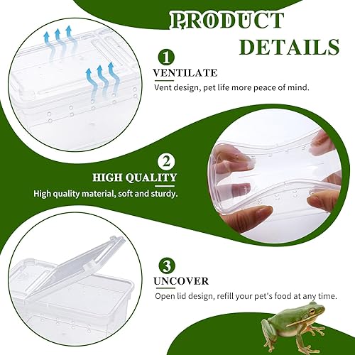 Packaging Quantity: The package has 10pcs mini small reptile feeding box, each measuring ‘3.6in L x 2.1in W x 1.9n H’. With plenty of small reptile feeding box to meet your needs, this feeding box is perfect for reptile lovers.