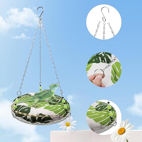 【Soft Canvas Bed】: The lizard hammock consists of breathable canvas cushions and trays, providing a cool and comfortable resting spot.Movable bed surface can machine wash,Trays can be rinsed directly with water, ensuring hygiene and reusability.