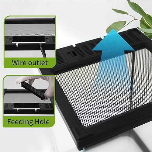 【Top Metal Ventilation】:Our gecko tank is topped with a movable metal mesh, so your pet can enjoy optimal airflow and ventilation, UVB and sun penetration and domed lighting. The power cable is also reserved on the top for easy use.