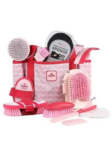 11-Piece Grooming Kit Includes: This horse grooming kit includes Flexible Finish Brush, Massaging Brush, Sweat Scraper, Compressed Sponge, Massaging Glove, Round Head Comb, Soft Brush, Tail Comb, Hoof Pick w/ Brush, and Mane Comb w/ Hair Bands. This comprehensive set provides everything you need for a full grooming routine - from deep cleaning and detangling to final styling touches.
