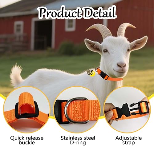 Adjustable Fit for goat :Features an adjustable collar 7.5-15.5 inches (19-40cm) with 0.98inch (2cm) width to comfortably fit lambs, goats, calves, and small pigs. The reinforced buckle ensures secure fastening for growing animals.