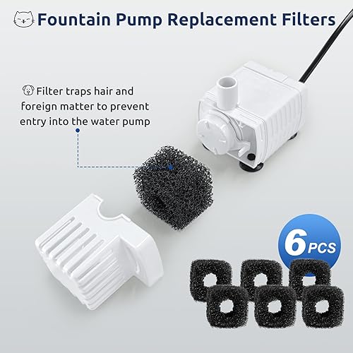 【Protect Water Pump 】 The pump replacement sponges filters, can capture pet hair, and prevent them from entering the water pump, extend the life time of your fountain pump.